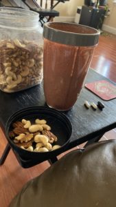 Along with my oatmeal I have one cup of coffee with Blue Diamond Almond Breeze milk and a spoonful of monkfruit sweetener. I like this brand of almond milk because it has no carrageenan or sugar, and it actually tastes a lot like milk.